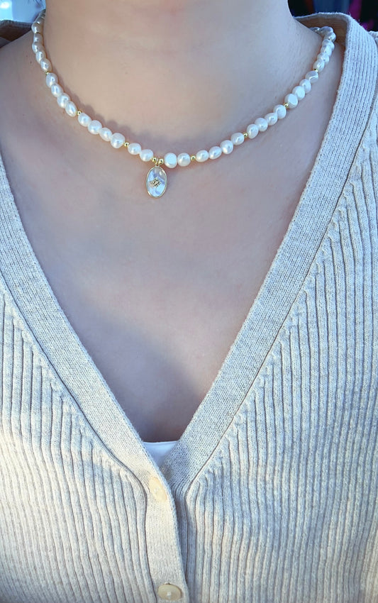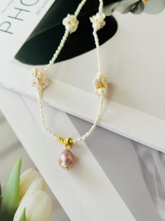 Baroque Freshwater Pearls Necklace- Shell Pendant
