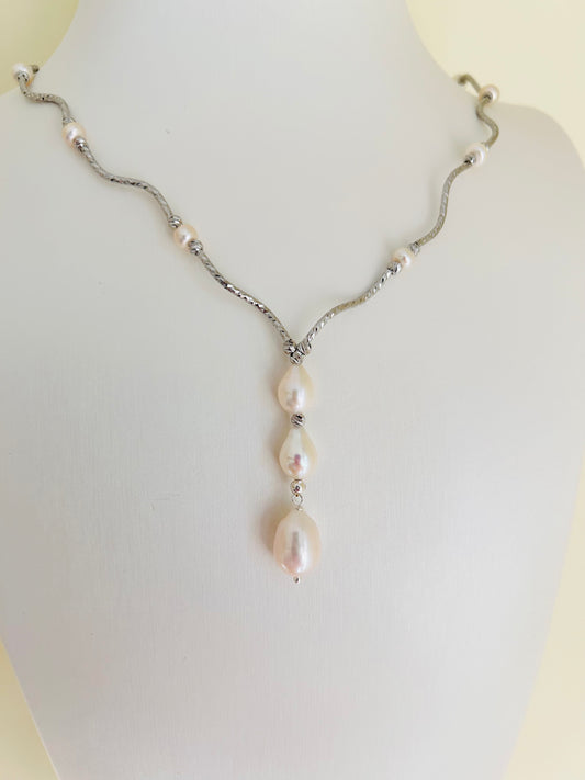 Sliver-Blue Natural Freshwater Pearl Necklace