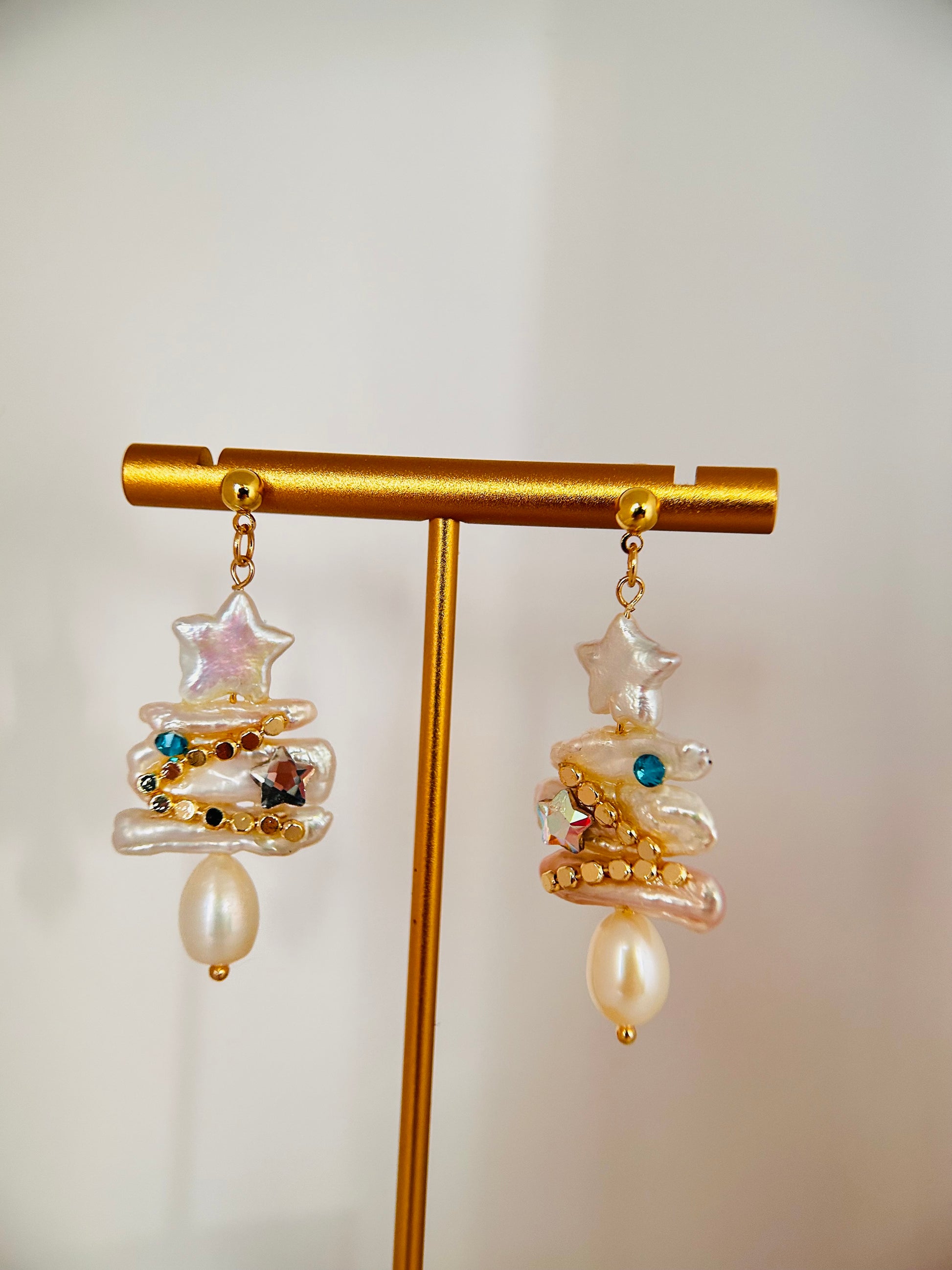 Celebrate the joy of the season with our Christmas Tree Freshwater Pearl Earrings, a festive and enchanting accessory perfect for holiday gatherings. Adorned with lustrous freshwater pearls in varying sizes, these earrings are meticulously arranged in the shape of a charming Christmas tree.