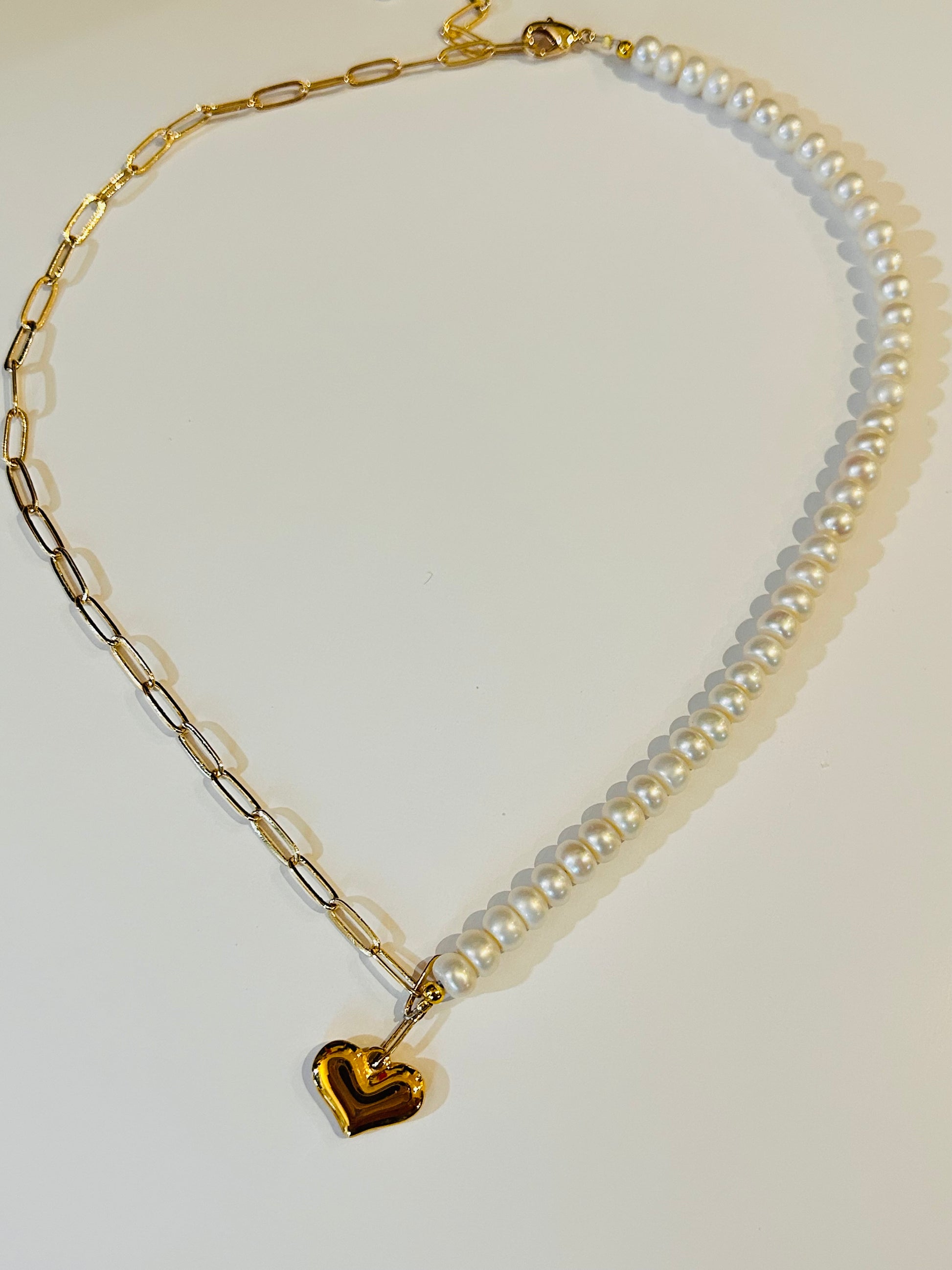Gold plated Brass chain 27cm (10.5 inches) with adjustable extension + half pearls necklace 21cm(8.25 inches)