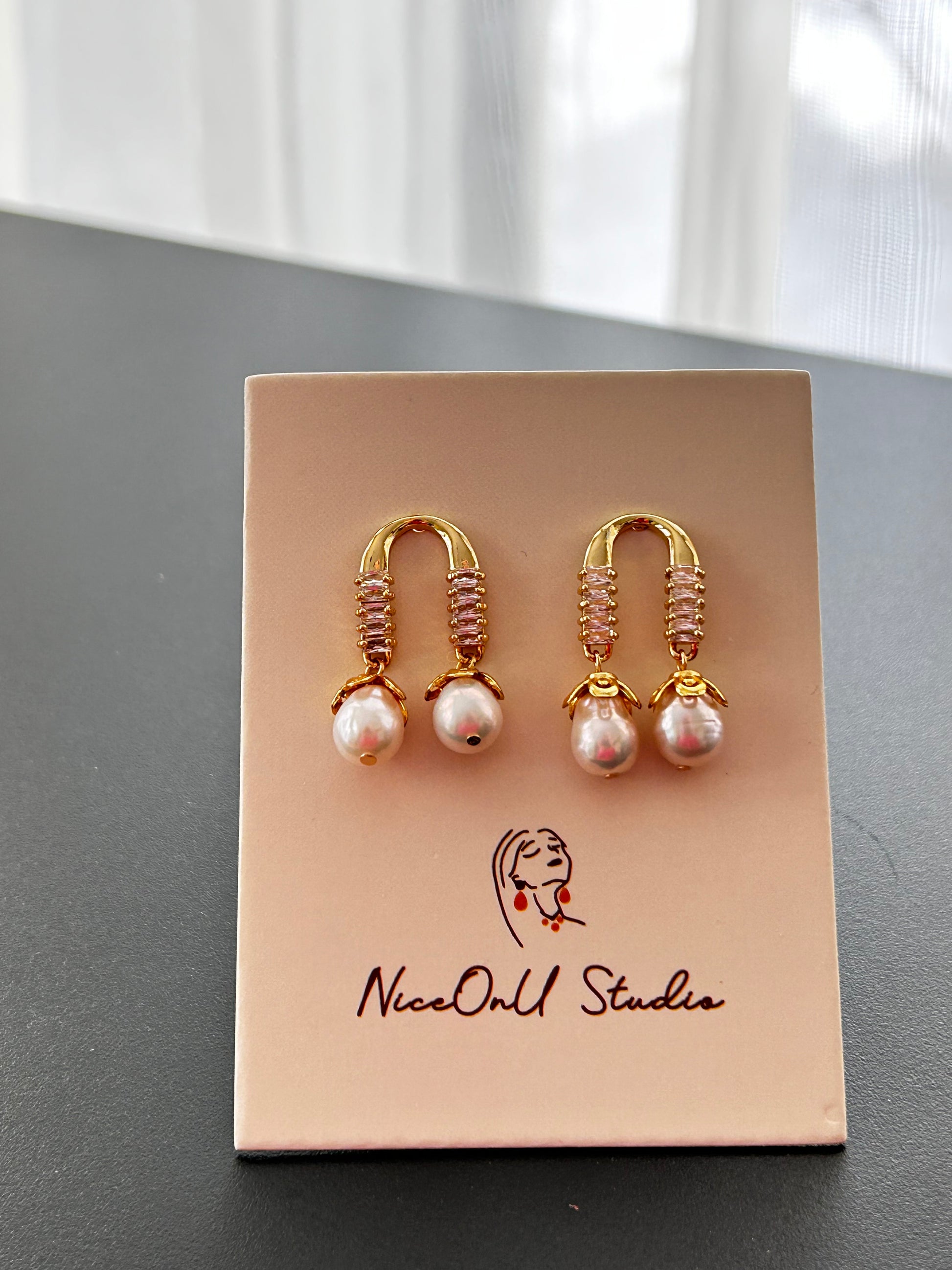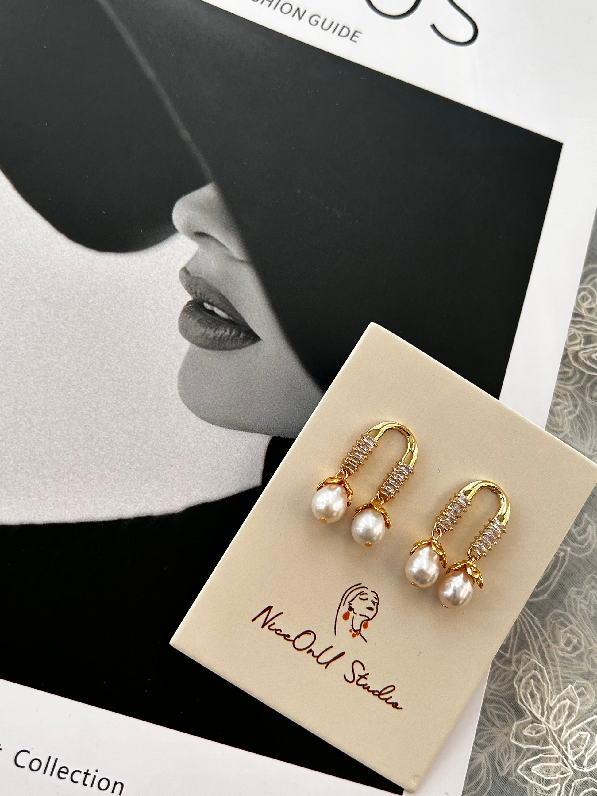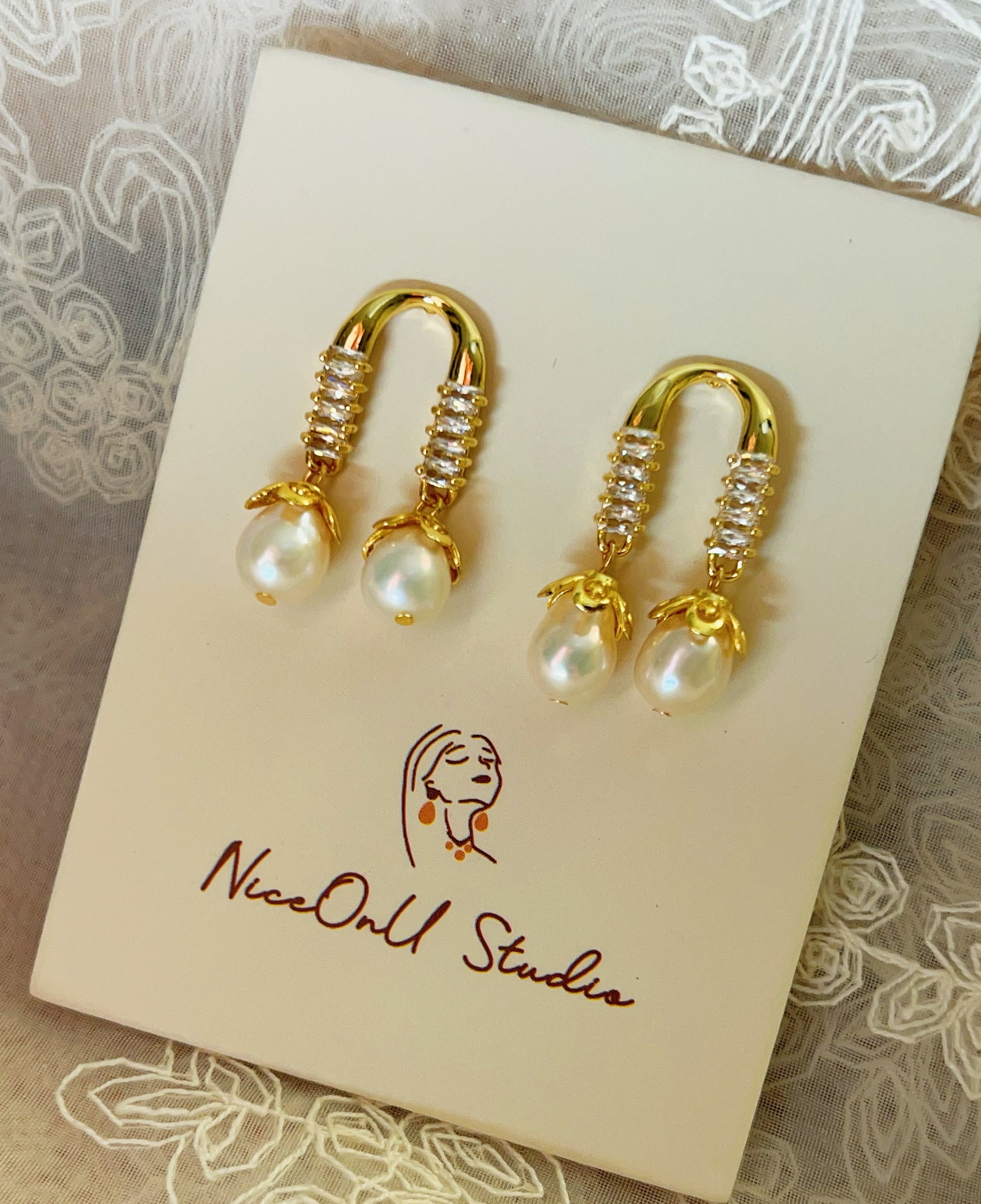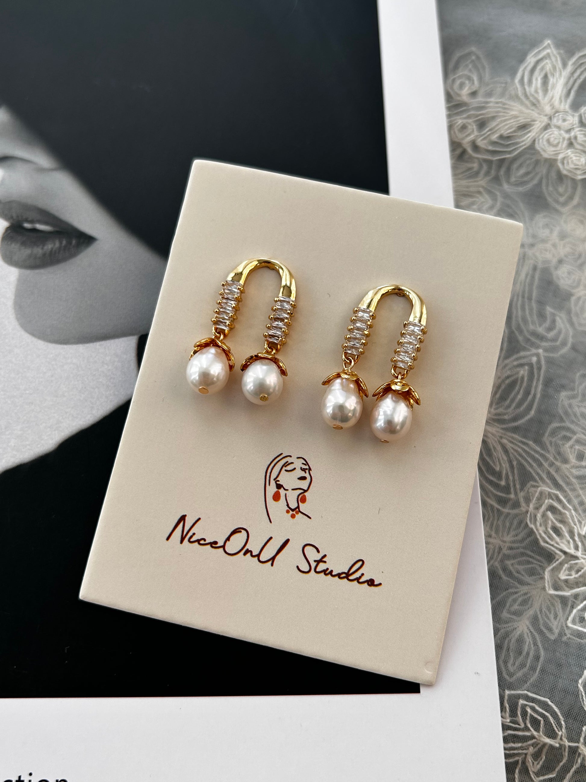 Horseshoes Zircon Pearl Drops Earrings