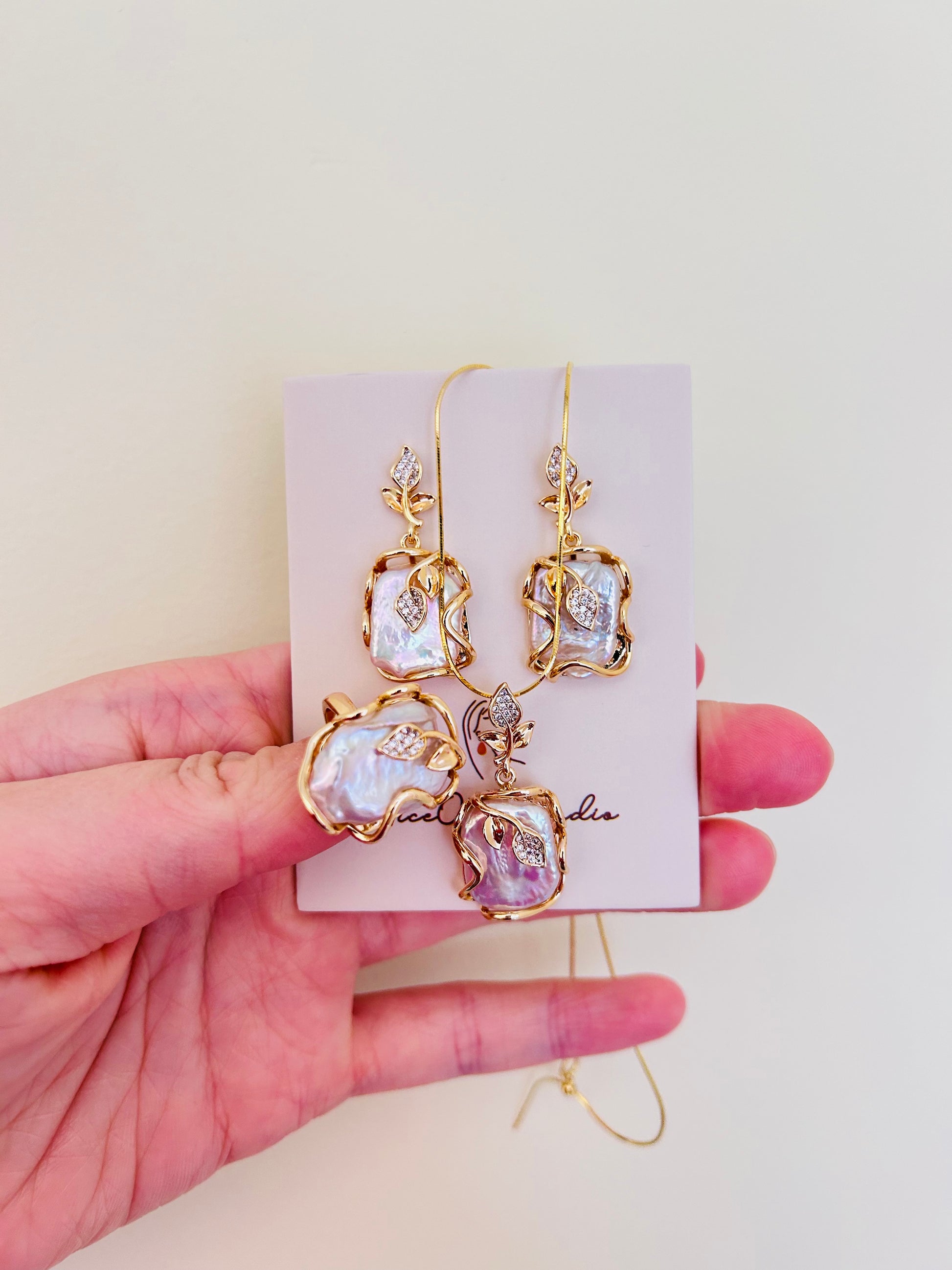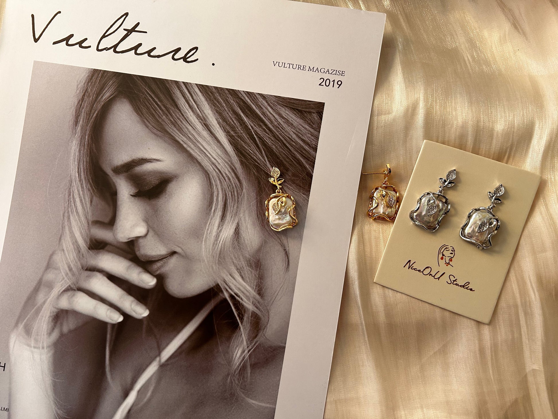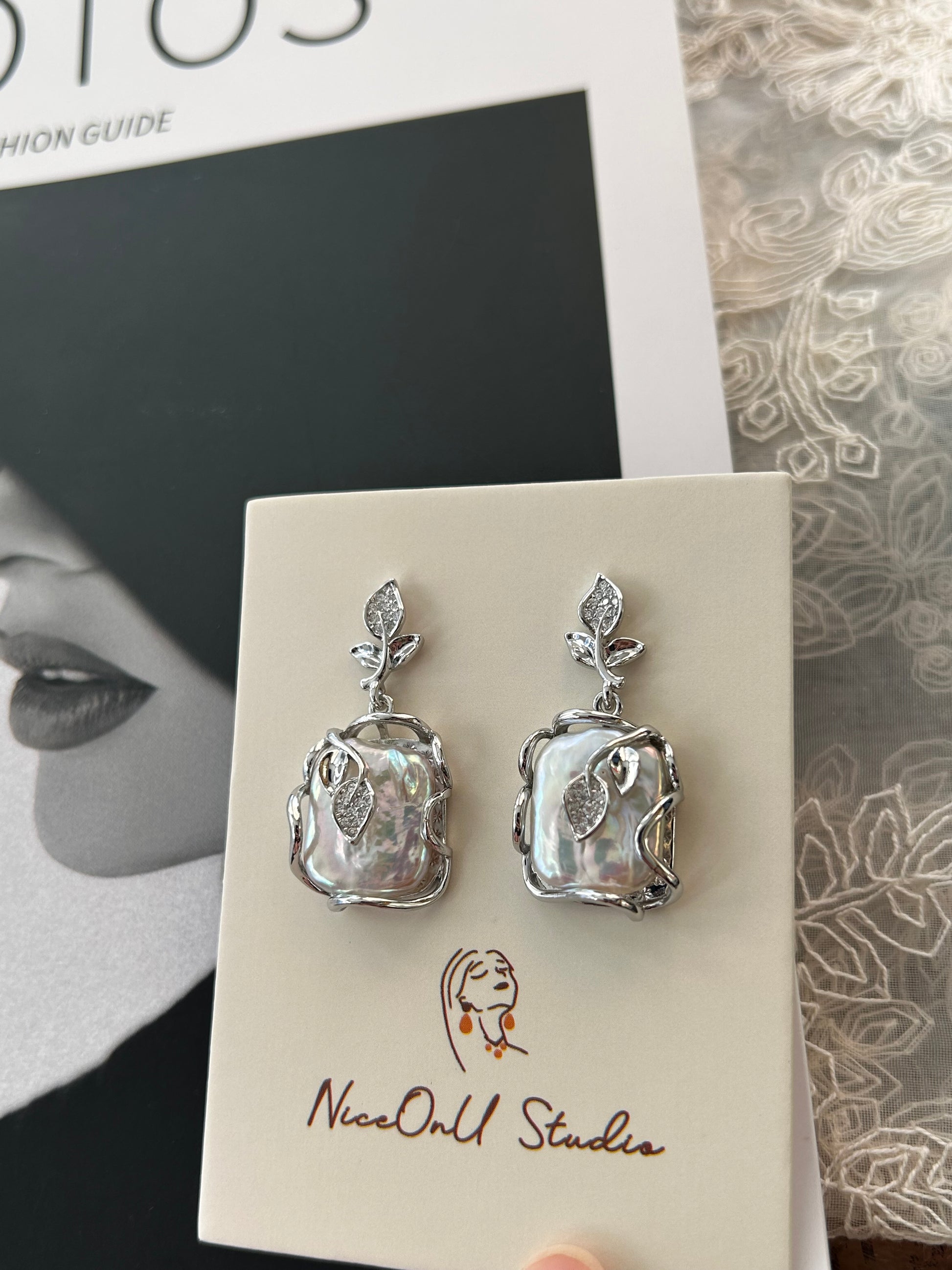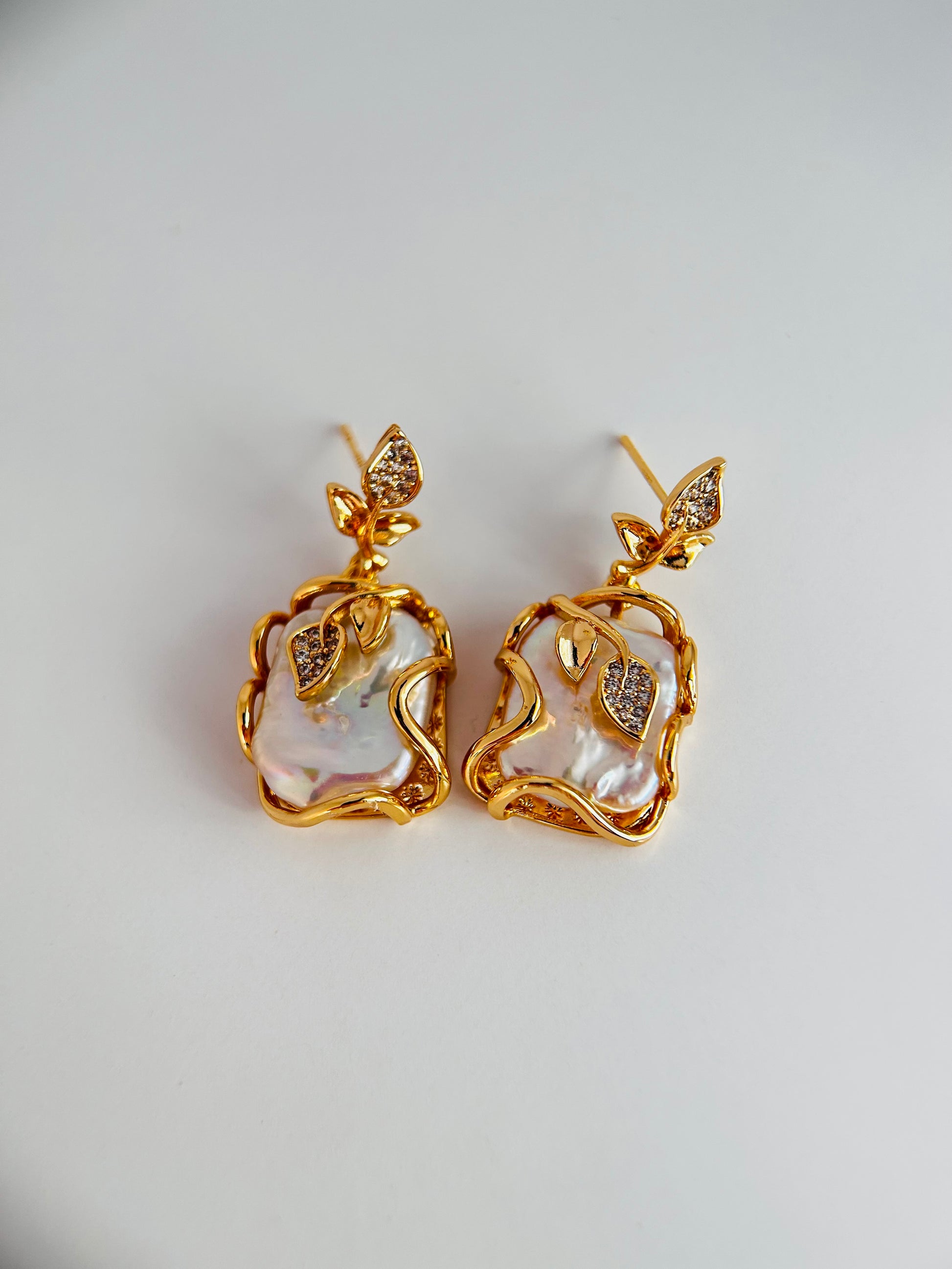 Elevate your style with our Leaf-shaped Gold-Plated Brass Earrings adorned with Rectangular Freshwater Pearls. Chic and versatile, these earrings effortlessly blend nature-inspired design with timeless elegance.