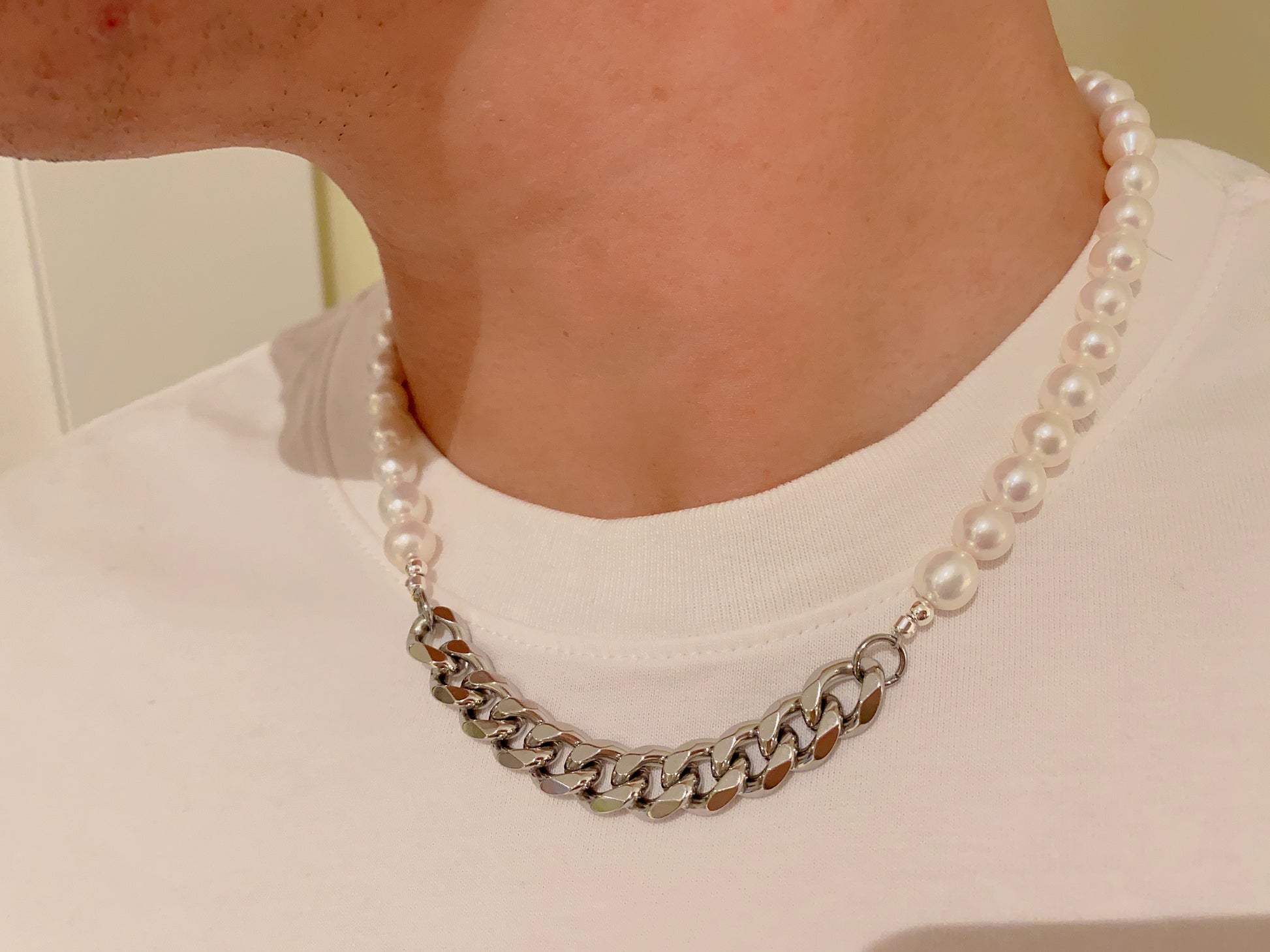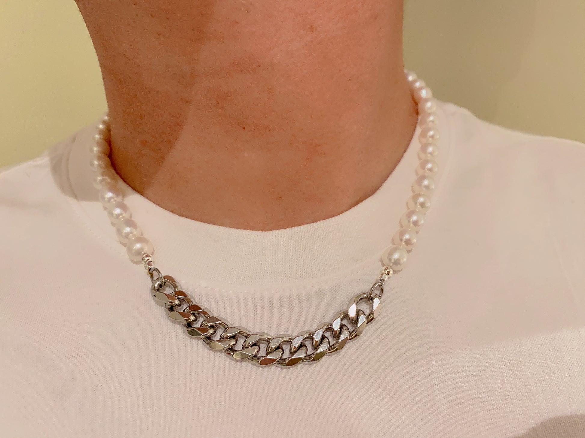 Man's Titanium Freshwater Pearl Necklace