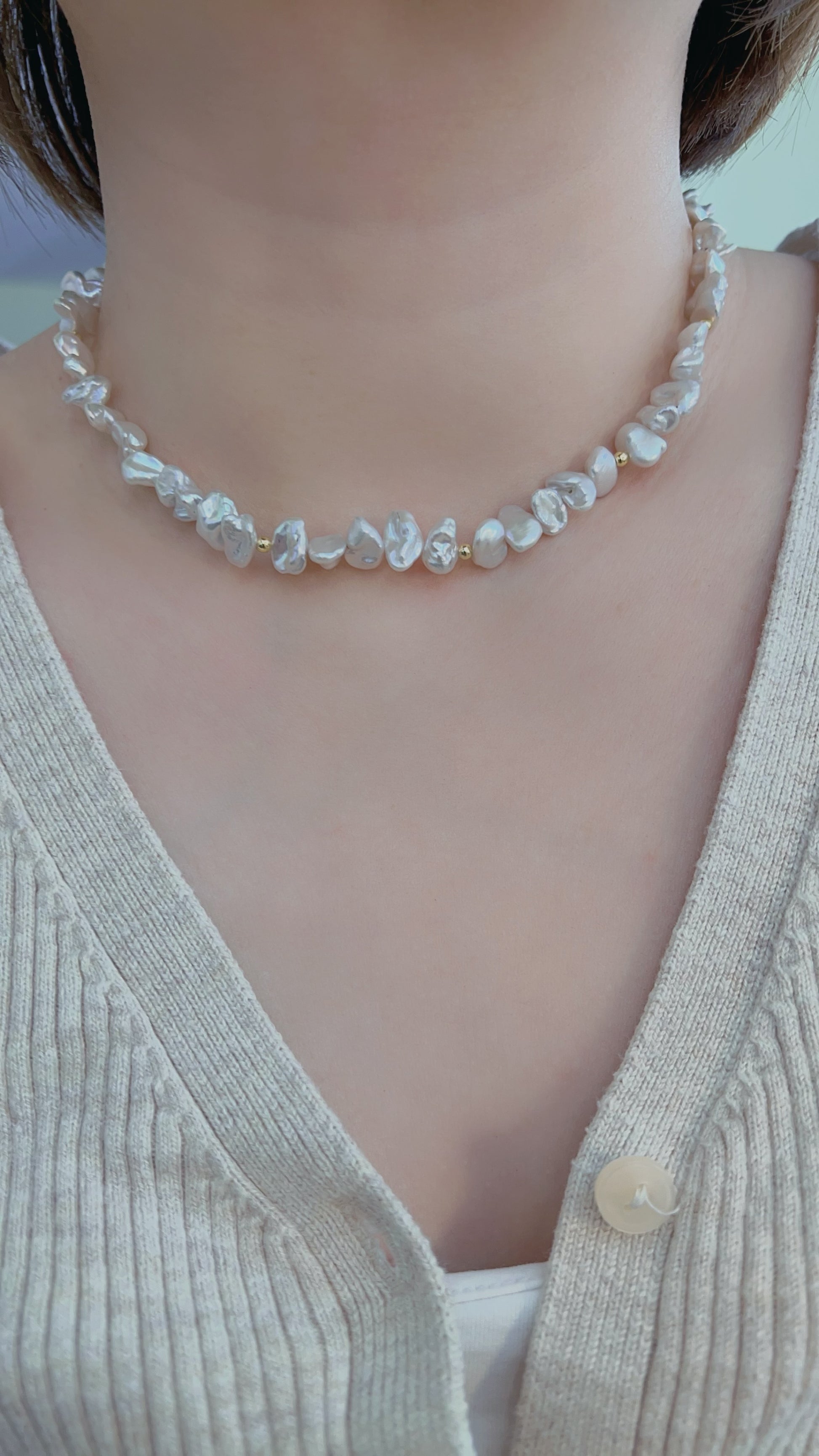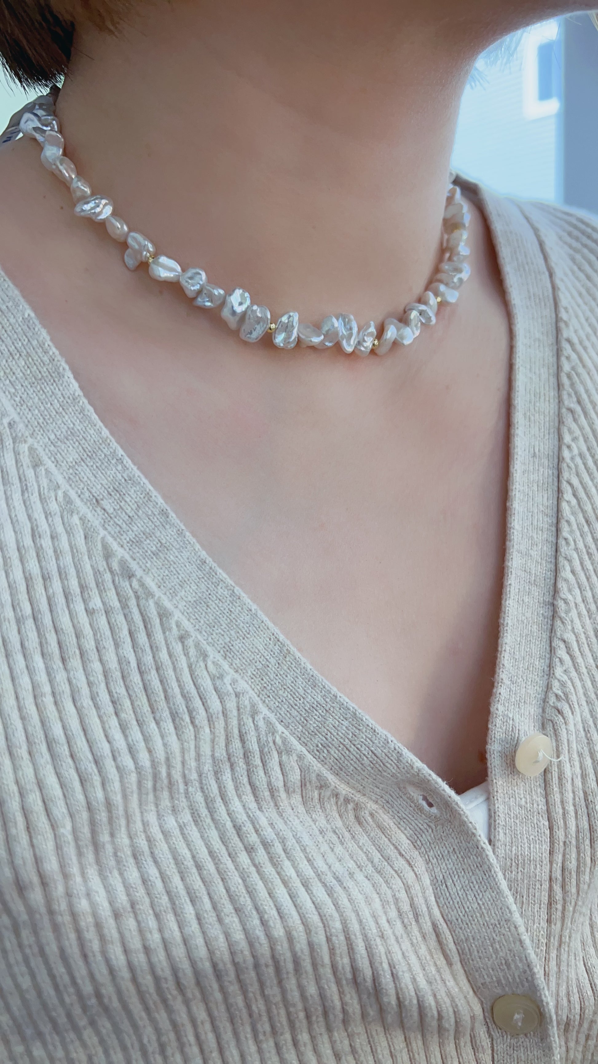 Sliver-Blue Natural Freshwater Pearl Necklace